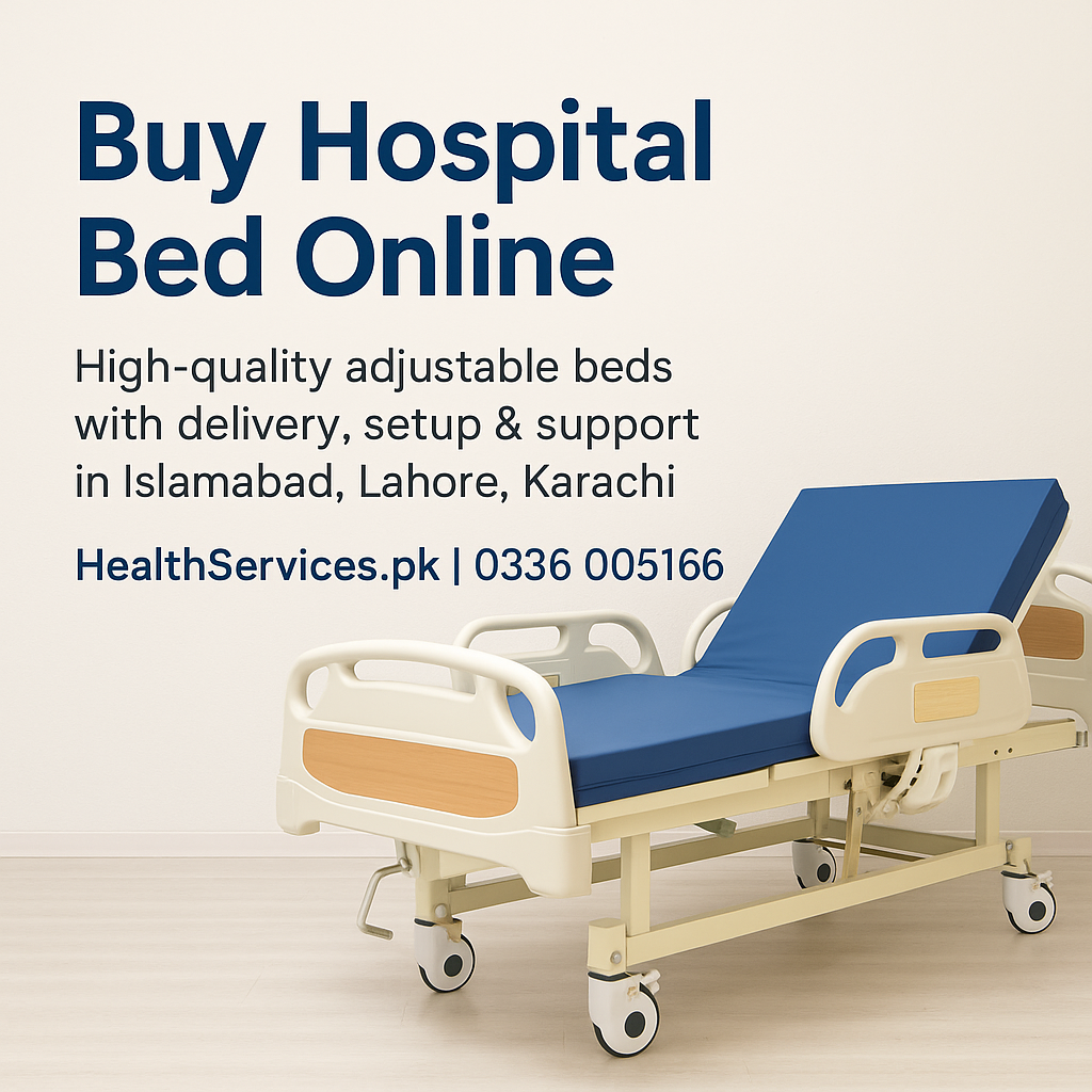 Buying a hospital bed online offers convenience, reliability, and a wide range of options. HealthServices.pk allows you to choose from manual, semi-electric, and fully automatic beds, all designed for safety, comfort, and easy home use. Our service ensures delivery and installation in major cities: Islamabad, Lahore, and Karachi.