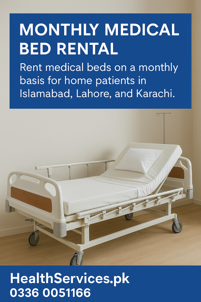 Contact: 0336 0051166 (WhatsApp) to rent or book your monthly medical bed for home care patients.